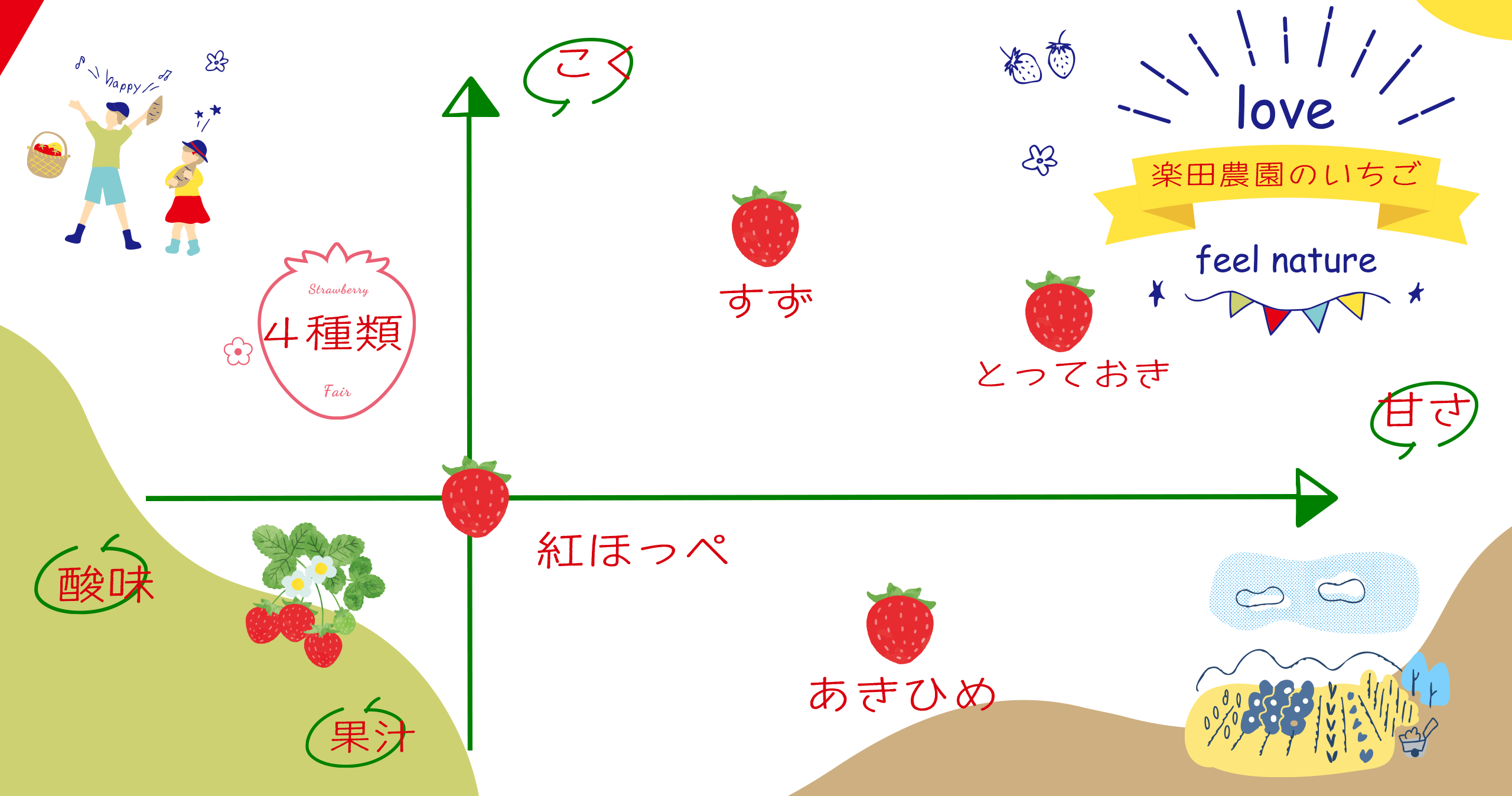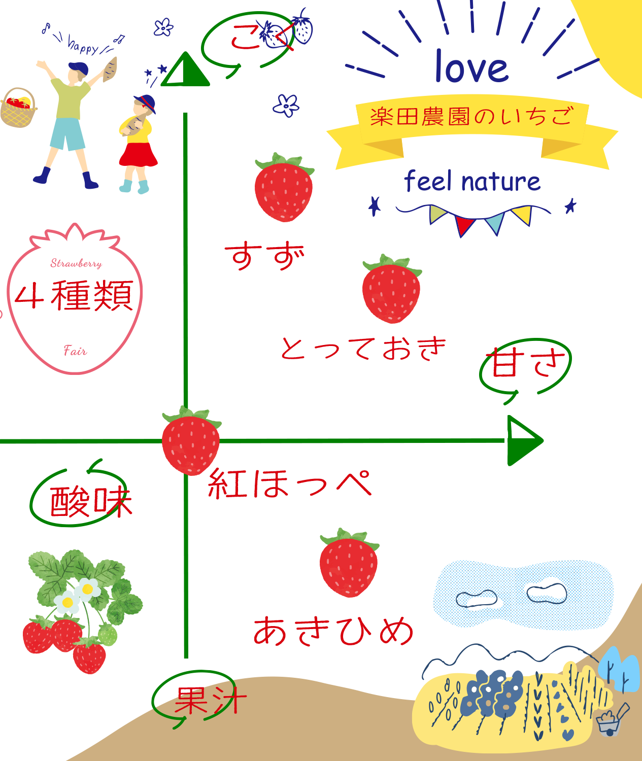 楽田農園ではいちご狩りだけでなく、お客様に楽しんで頂くための環境がたくさんあります!